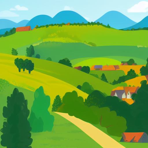 A rural landscape with several hills