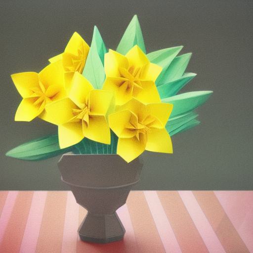 Paper flowers in a pot on a table