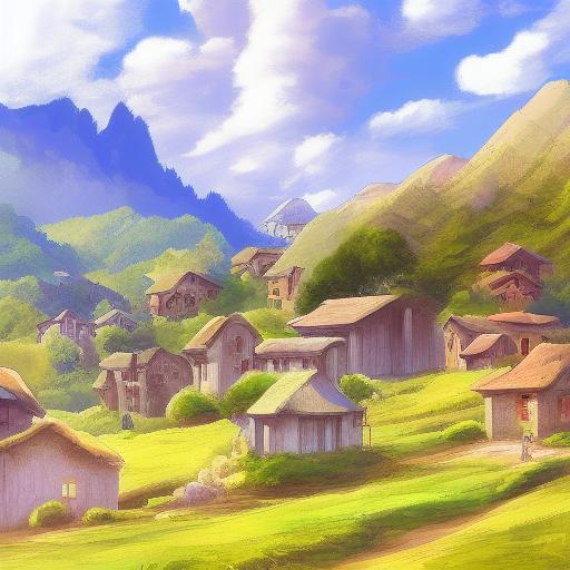 The digital art of a small village in the mountains