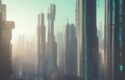 The digital city with lots of tall buildings