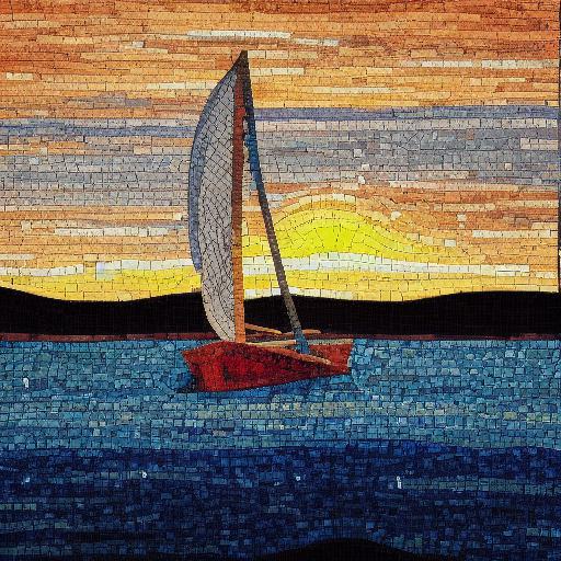 The mosaic of a sailboat on the water
