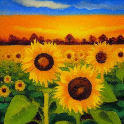 The painting of sunflowers in the field