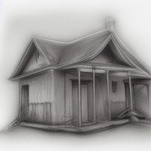 A black and white charcoal drawing of a house