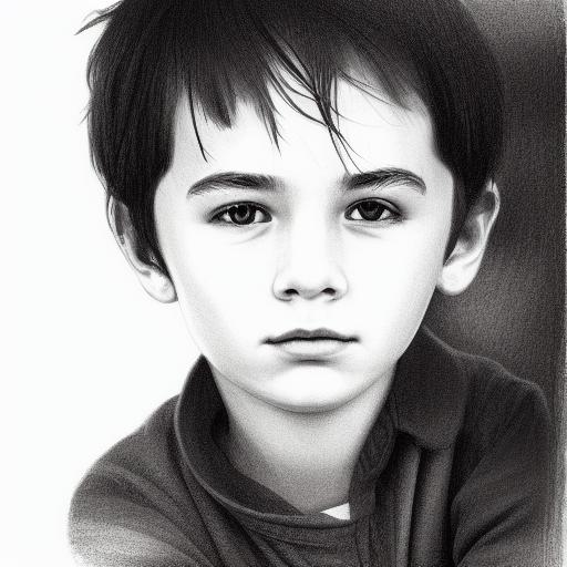 A black and white drawing of a young age boy
