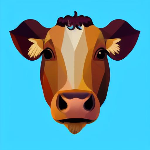 A close up of a cow face on a blue background