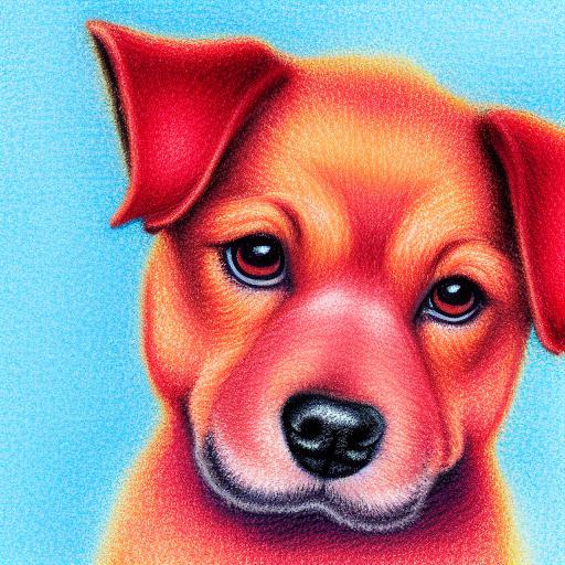 A close up of a painting of cute puppy with red background