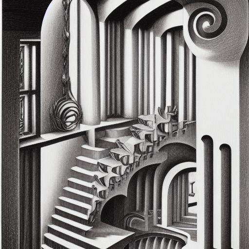Furthermore, the prompt references “inside mc escher architecture” and “mc escher illustration” which provides specific details about the composition and style of the image. It also mentions “mc escher art,” which helps the AI algorithms understand the desired output and style of the image.