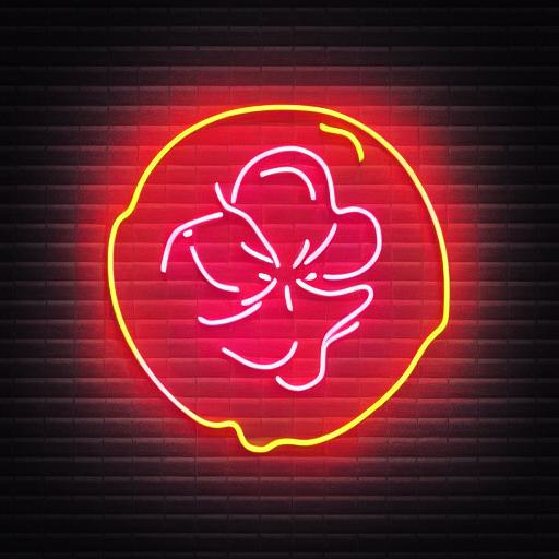 A flower neon sign on the wall