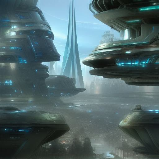 A futuristic city with trees