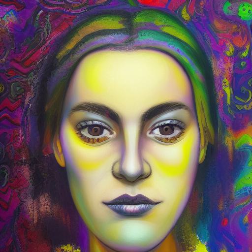 - “A highly detailed Psychedelic painting of a woman’s face in a close-up shot” – This sets the subject matter of the image. The AI will generate an image that features a woman’s face in a close-up shot, with intricate details and a psychedelic twist.