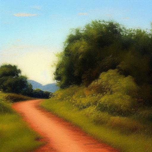In this prompt, the first detail is “a painting of a country road.” This prompts the algorithm to generate an image of a landscape featuring a road that is likely to be in a rural or countryside setting. The inclusion of “lots of shrubs” adds further detail to the image, indicating that the road may be surrounded by natural vegetation.