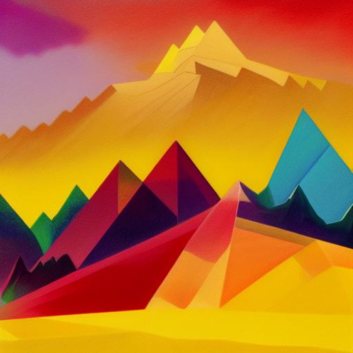 A painting of mountain with rainbow in the background