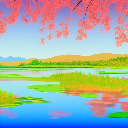 A painting of red lotus lake