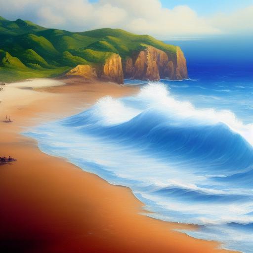 A painting of sea and beach