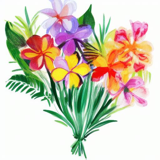A painting of six flowers on a white background