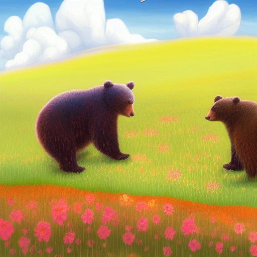 A painting of two bears in a field of flowers