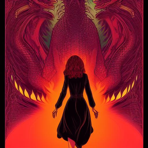 A woman that is standing near a dragon