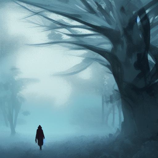 Fantasy digital art of a person walking through a forest