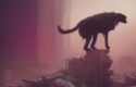 • The artwork is dystopian art, featuring a dog standing on top of a pile of rubble.