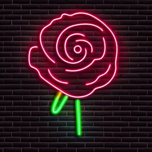 Flower neon sign on a brick wall
