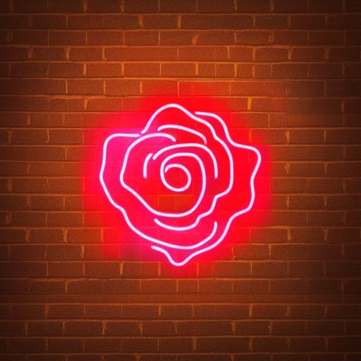 Flower neon sign on the brick wall