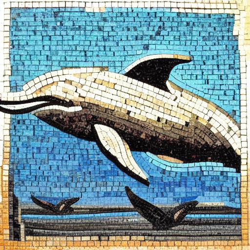 Mosaic of a dolphin in the costal inspired by Charles Ginner