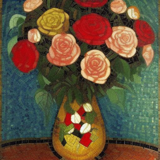 Mosaic of roses in the vase inspired by Mikhail Vrubel
