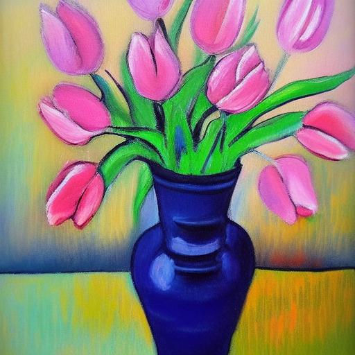 The painting of pink flowers in the vase