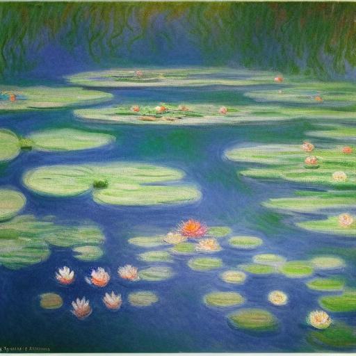 The painting of water lilies in a pond of water