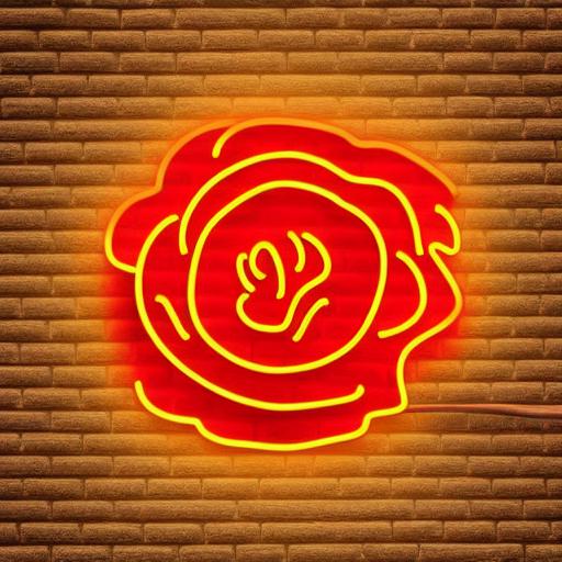 Yellow flower neon sign on the brick wall
