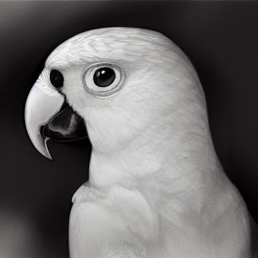 A black and white drawing of a parrot