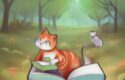The first part of the prompt is “a cartoon cat reading book in the woodland.” This sets the scene for the image and gives the AI a clear idea of what elements should be included. The “woodland” aspect suggests a natural environment with trees, foliage, and possibly a few animals, while the “cartoon cat reading book” aspect implies a character who is literate and intellectually curious. This element will likely lead to a picture of a cat sitting in the forest, possibly with a book in its lap, surrounded by trees and other woodland creatures.