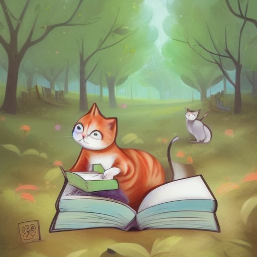 The first part of the prompt is “a cartoon cat reading book in the woodland.” This sets the scene for the image and gives the AI a clear idea of what elements should be included. The “woodland” aspect suggests a natural environment with trees, foliage, and possibly a few animals, while the “cartoon cat reading book” aspect implies a character who is literate and intellectually curious. This element will likely lead to a picture of a cat sitting in the forest, possibly with a book in its lap, surrounded by trees and other woodland creatures.
