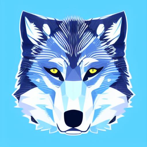 A close up of a wolf face on a blue background