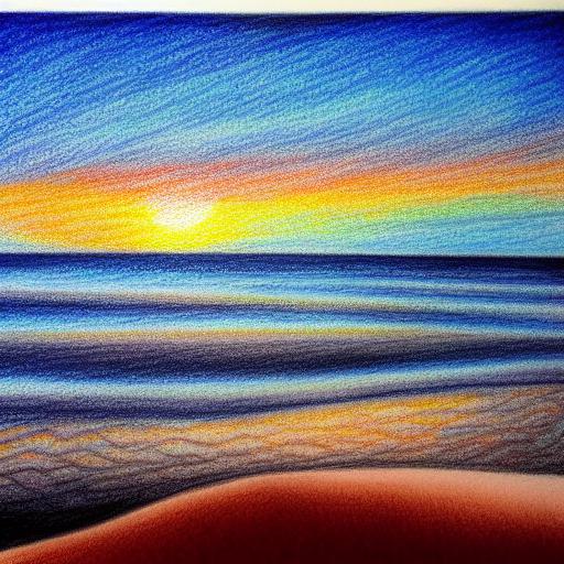 A drawing of a sunset near a sea