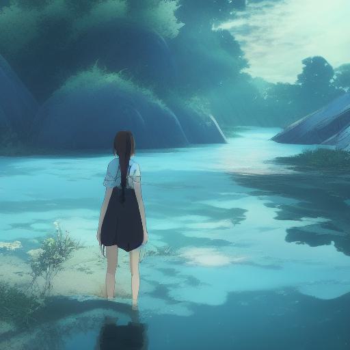 A girl standing in water