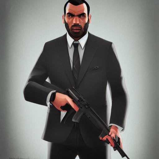A man in a suit holding a gun