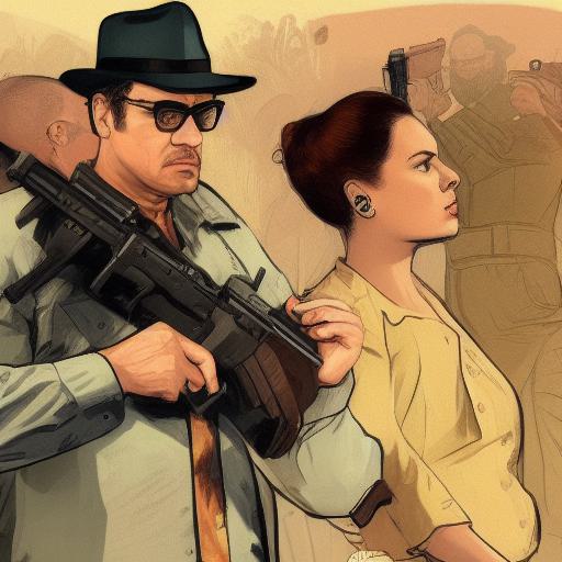 A man standing next to a woman holding a gun