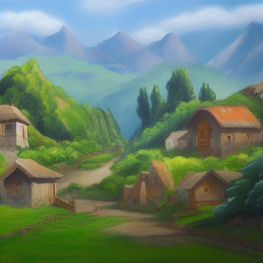 A painting of a small village in the mountains