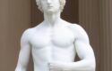 A white statue of one male a marble sculpture inspired by Augustus Dunbier
