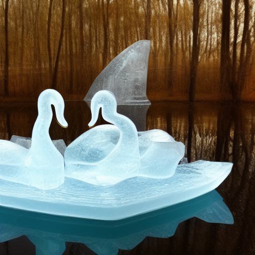 An tranquil ice sculpture of two flowing ice-made swans on a wave