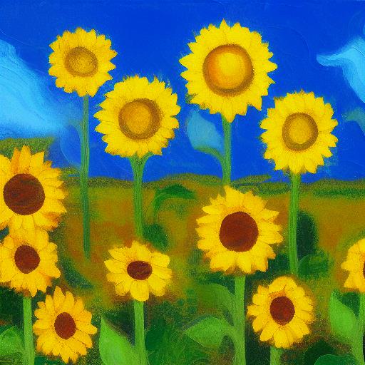 Painting of sunflowers in a field