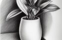 Pencil drawing of a plant in a vase