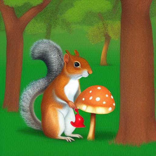 The squirrels near a mushroom