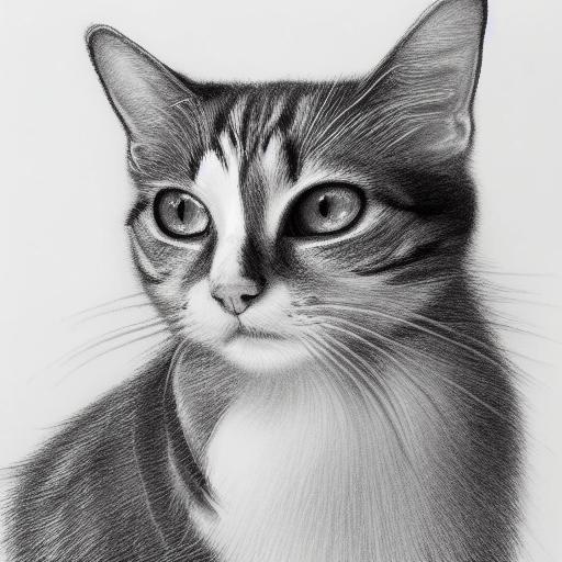 A black and white drawing of a American wirehair cat portrait