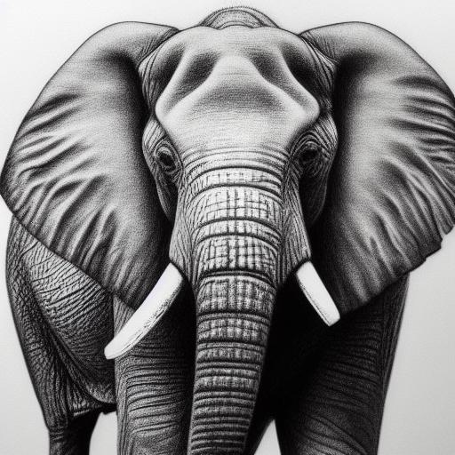 A black and white drawing of an elephant