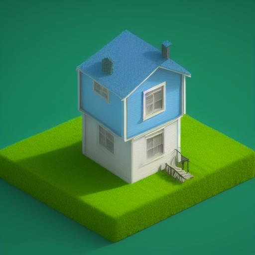 A blue house sitting on top of a green field