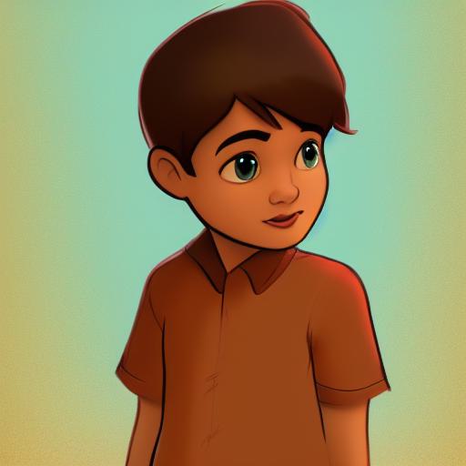 A boy with a brown shirt