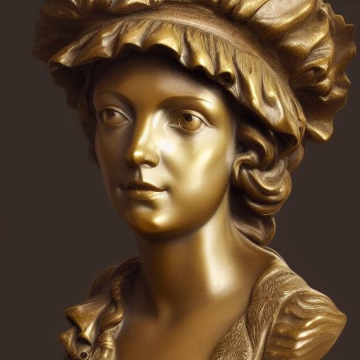 A bronze bust of a young lady wearing a hat
