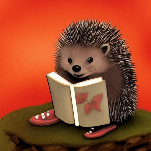 A hedge sitting on a stump reading a book